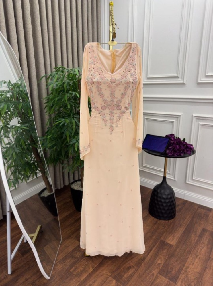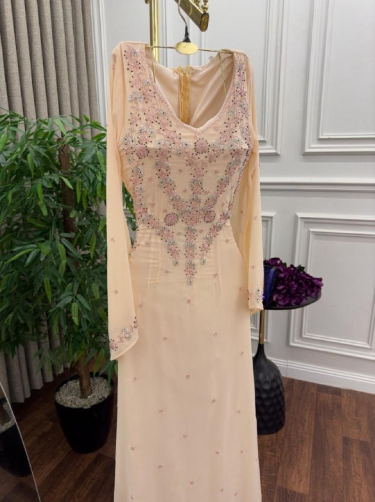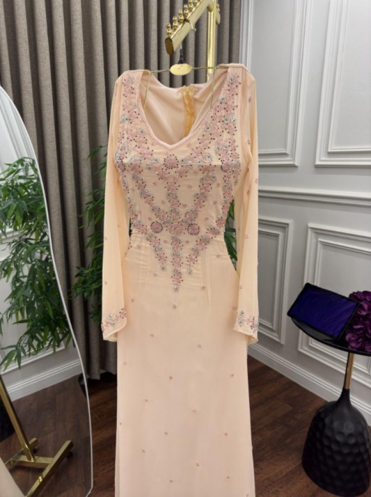 - التطريز: تطريز فاخر بأحجار لامعة وكريستالات صغيرة تضيف لمسة ملكية مبهرة.