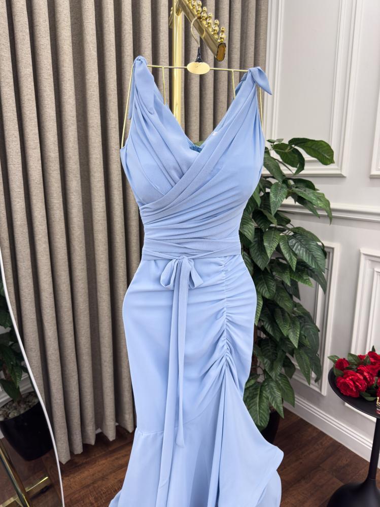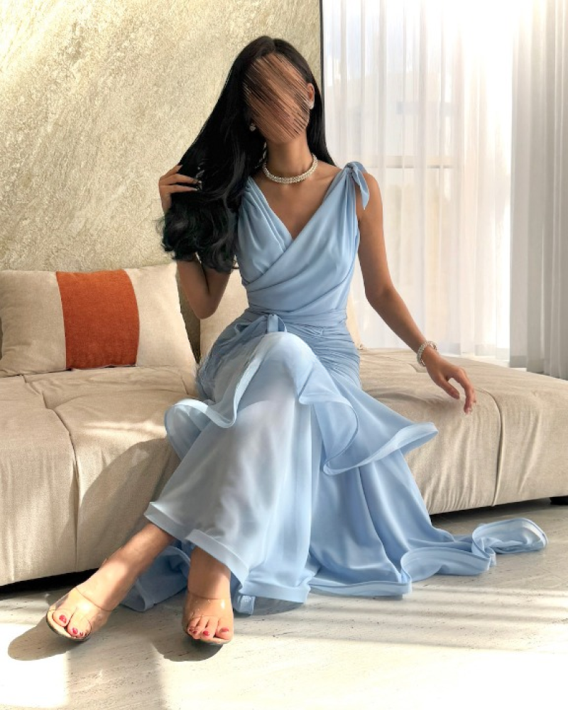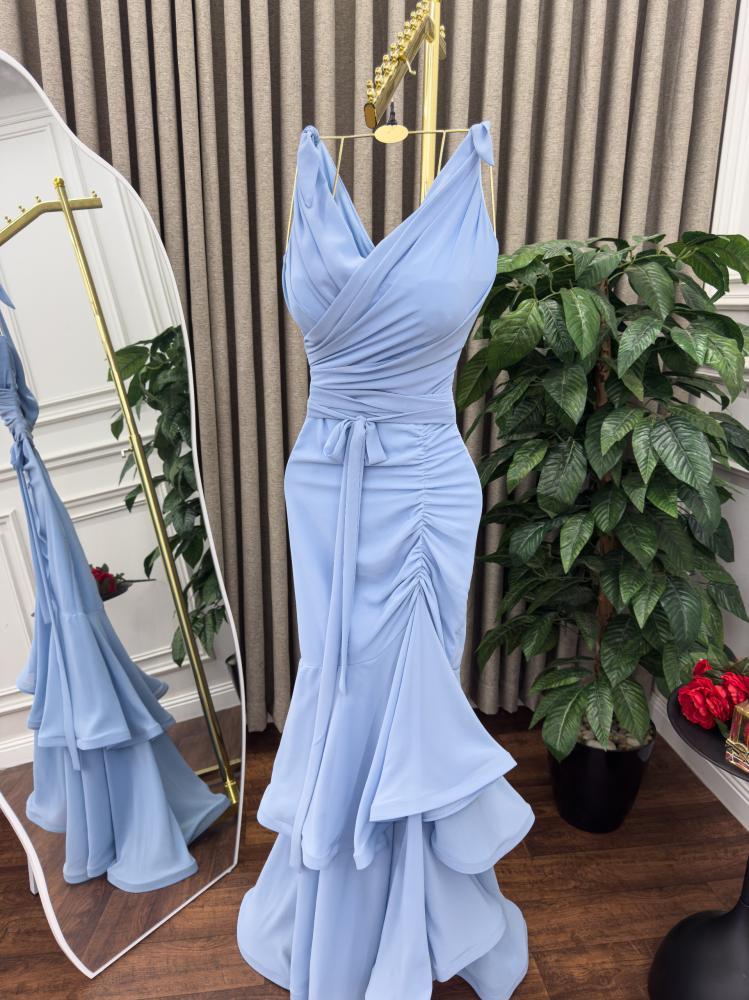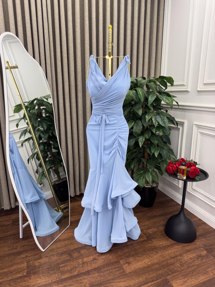 فستان سهرات ناعم شفون بلون أزرق سماوي