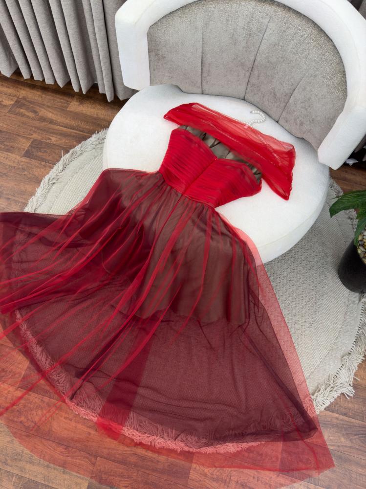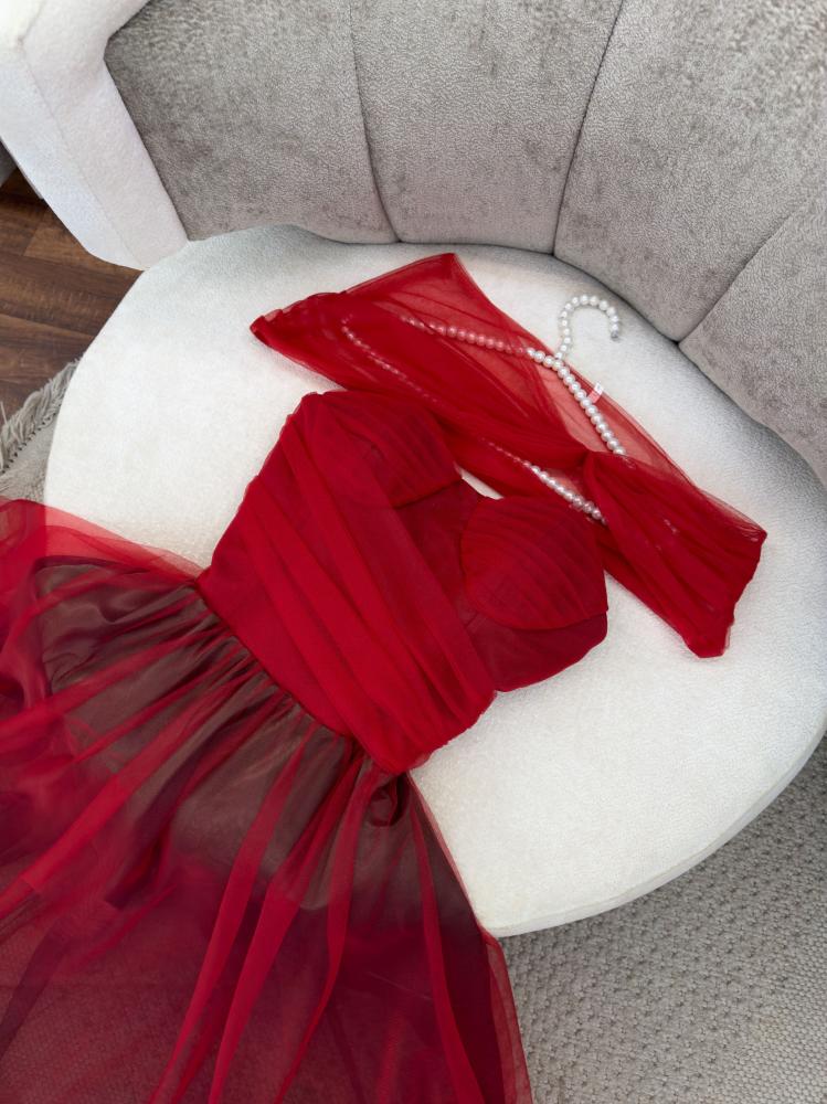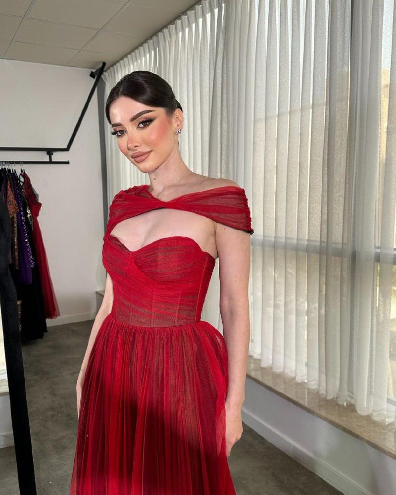 الوصف/ عبارة عن فستان سهرة يأتي باللون الاحمر الجذاب بتصميم انيق حديث بقماش تل ناعم كسرات كلوش مبطن تفته كوري تم حياكتها من خامات عالية الجودة والتصنيع خفيفة على البشرة فستان مريح في الارتداء ويمكنك ارتداؤها لفترة طويلة مناسب لكل الأوقات والأماكن الخاصة واستقبال الضيوف المهمين