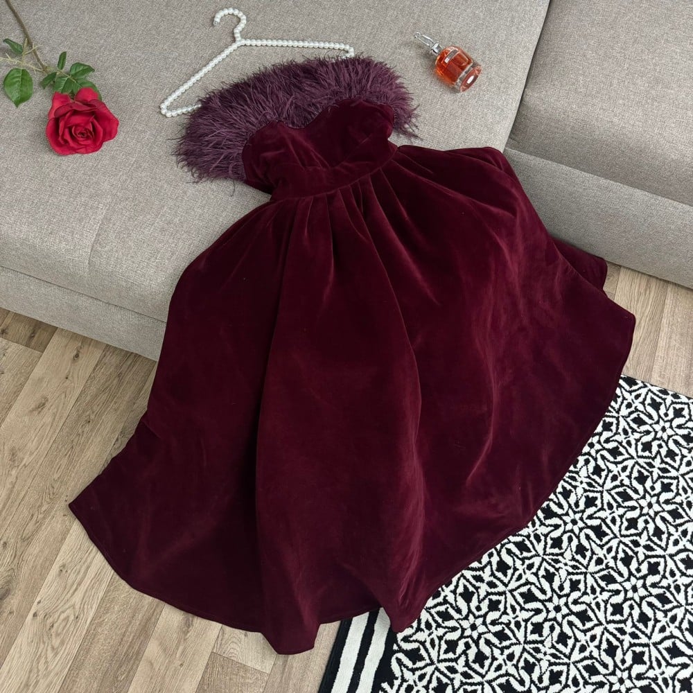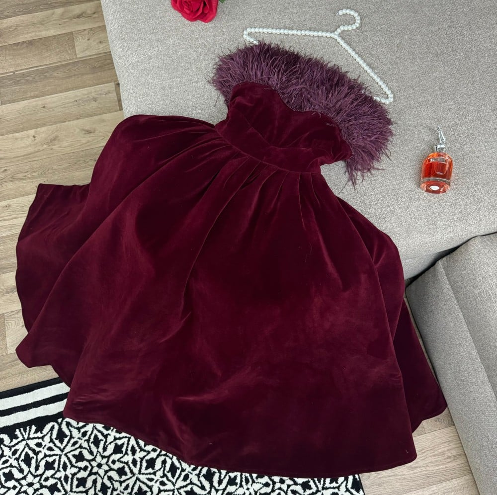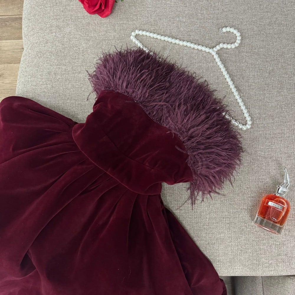 أسم الموديل/فستان شتوي سهرة عودي صدر ريش