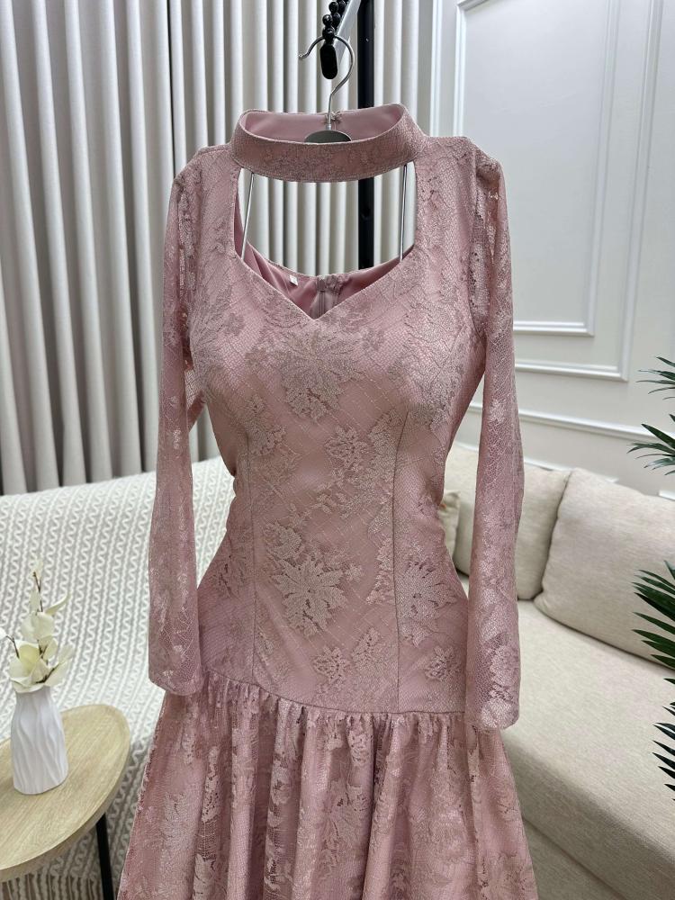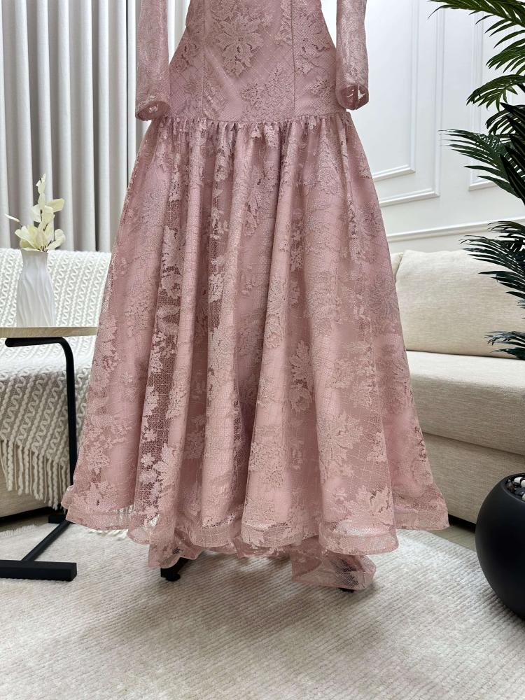• نوع القماش: مصنوع بالكامل من قماش الدانتيل الراقي، يتميز بملمس ناعم وطبقة شفافة تضفي مظهراً أنثوياً مميزاً.