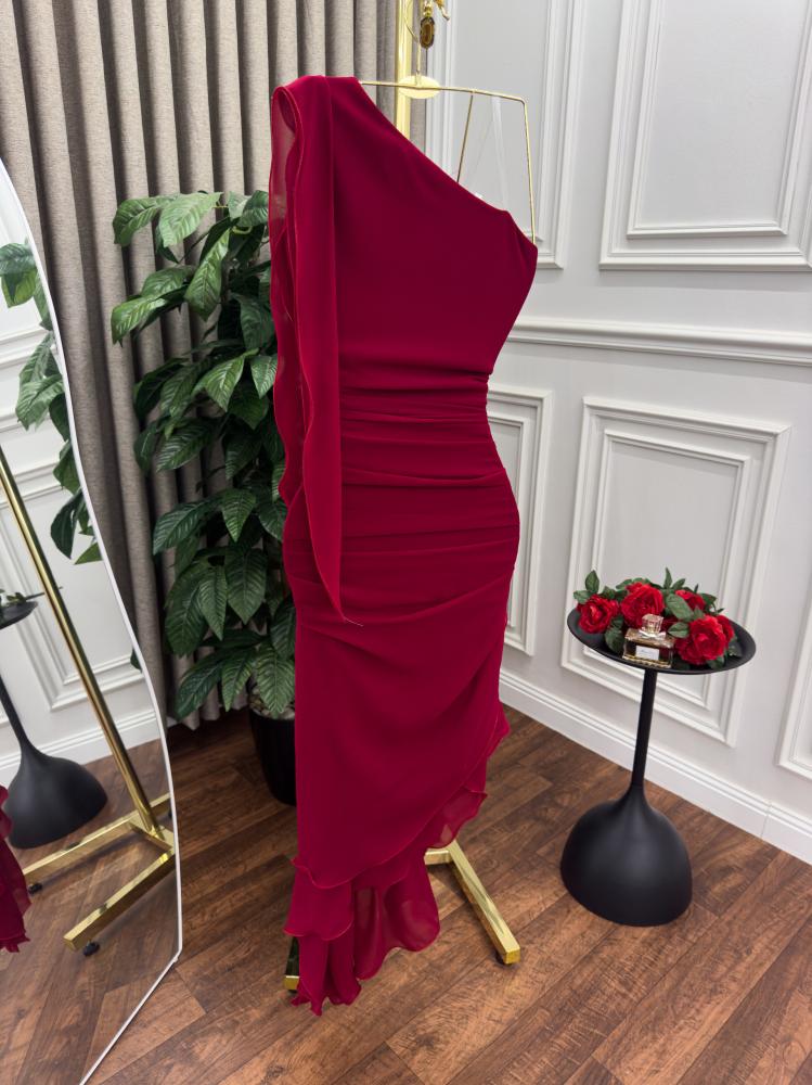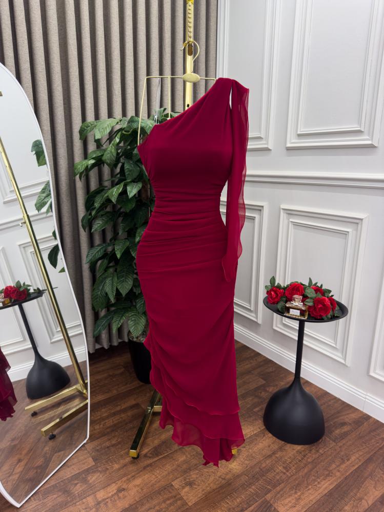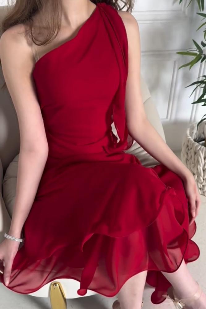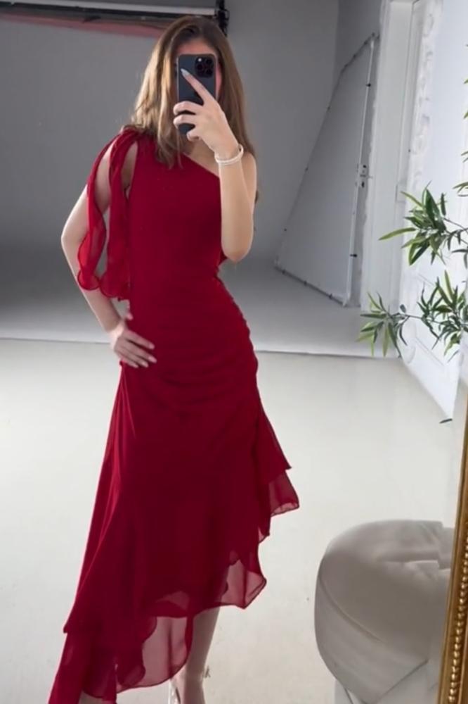 - الصدر: قصة بكتف واحد (One Shoulder) تمنحك لمسة أنيقة وعصرية.