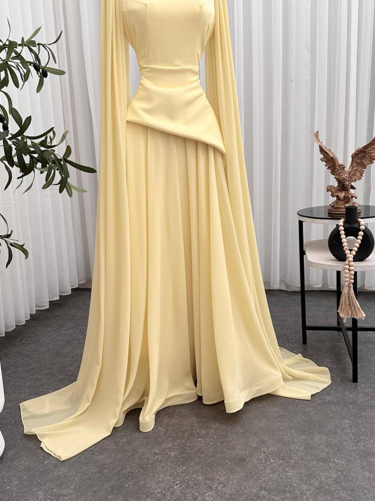 • اللون: ليموني ناعم لإطلالة أنثوية جذابة
